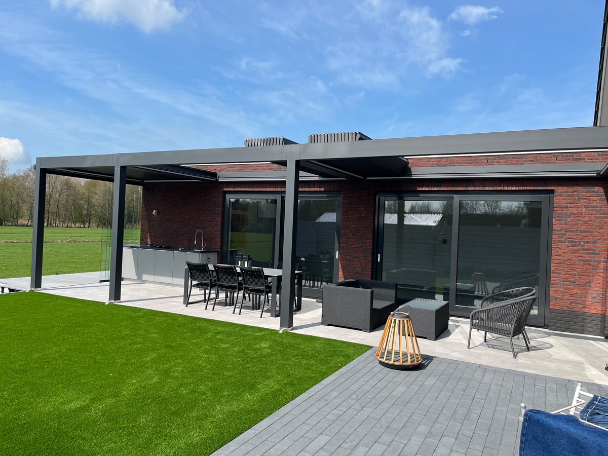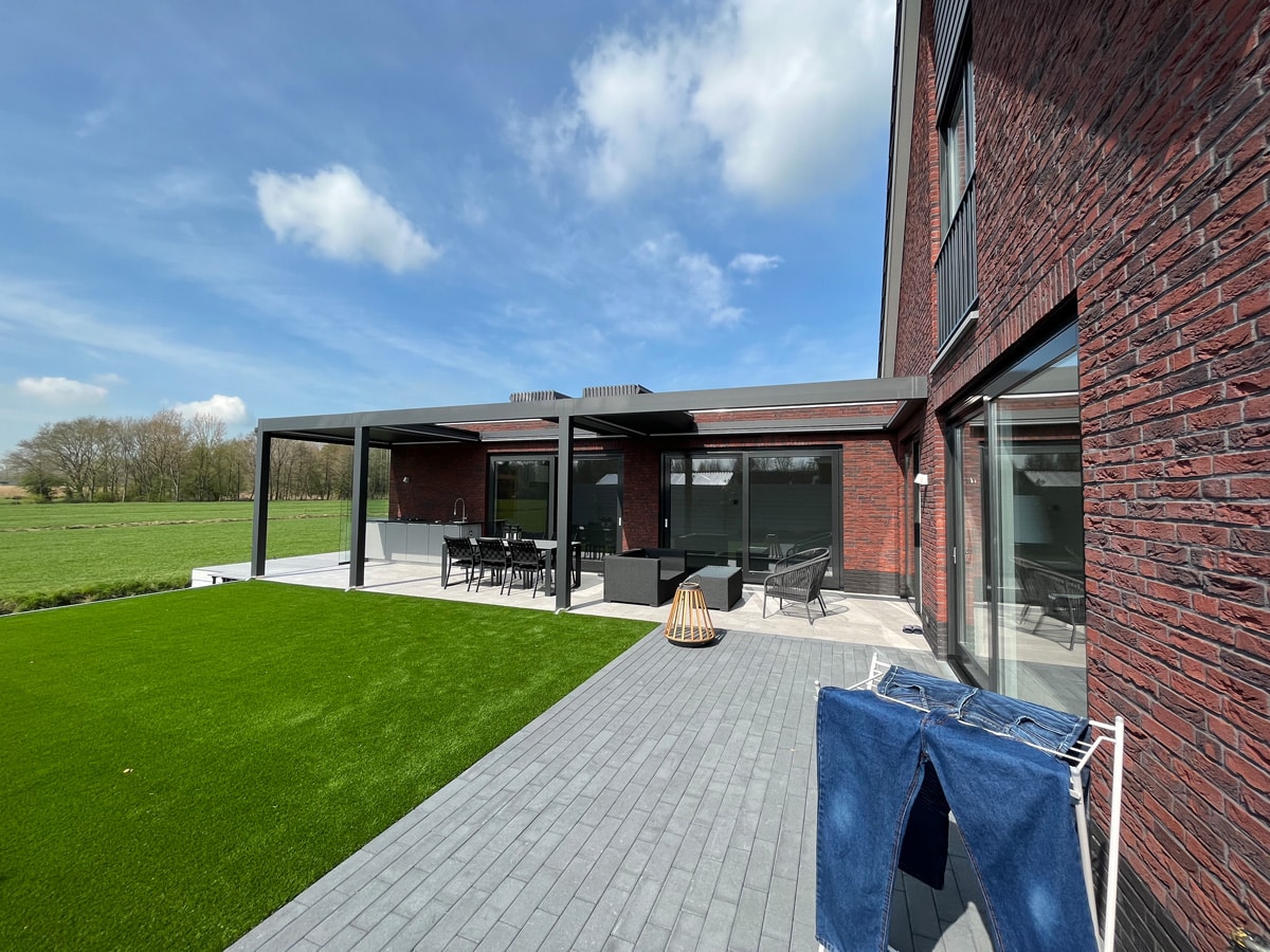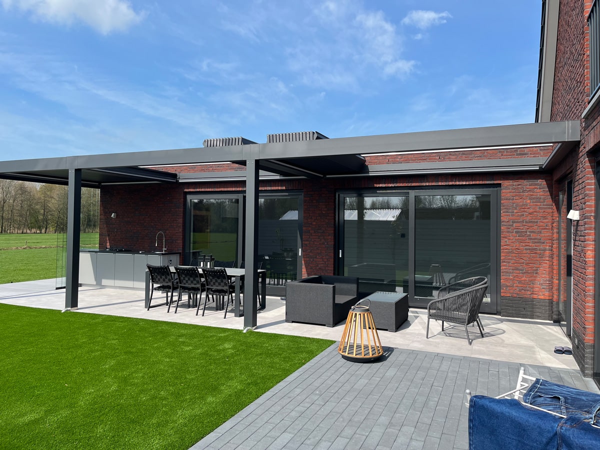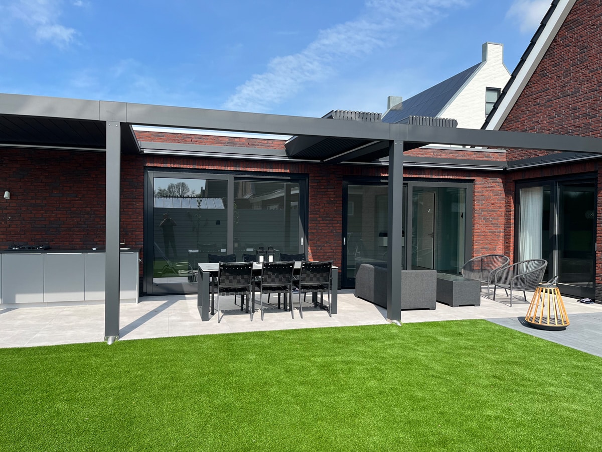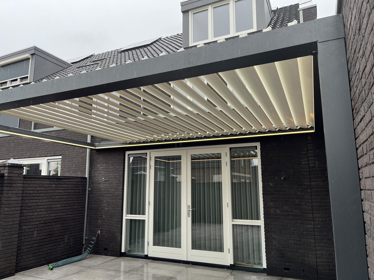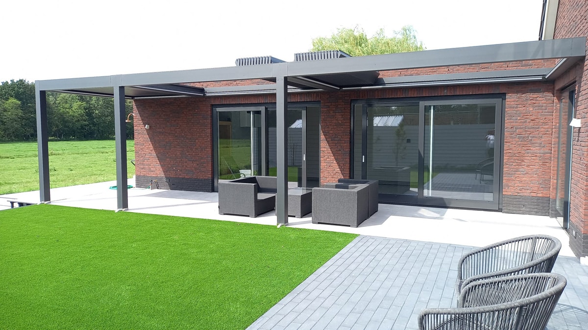 Het grote voordeel van een tuin of veranda met lamellendak is dat deze bescherming biedt tegen vrijwel alle weersomstandigheden zonder uw buitengevoel geweld aan te doen. Een lamellendak heeft namelijk geen brede kolommen, palen, schotten of wanden die het contact met of zicht op uw tuin verminderen. Onze producten zijn allemaal gemaakt in een stijlvol, strak en tijdloos design. Door eenvoudig de lamellen te draaien, kunt u de gewenste hoeveelheid schaduw onder het lamellendak regelen. Daarnaast kunt u ook de gewenste hoeveelheid ventilatie regelen. Door de lamellen te openen, kan frisse lucht vrij circuleren. Zeker op warme dagen is dat echt heerlijk.